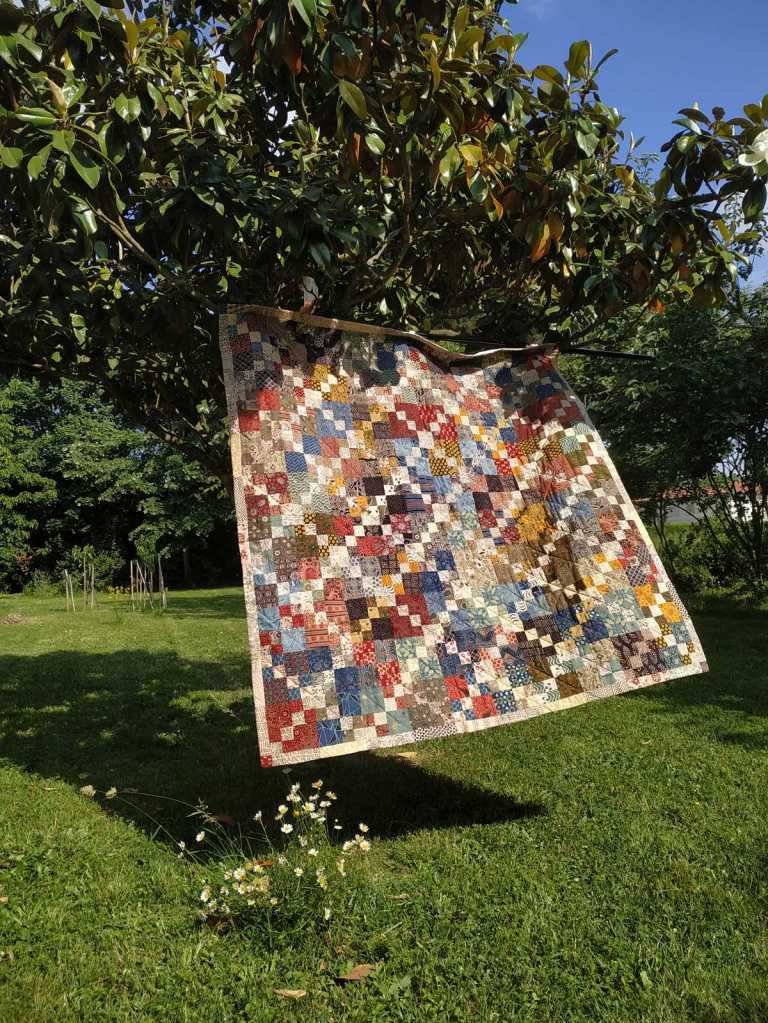 En septembre dernier en Alsace, j’ai eu la chance de discuter avec Lucie, une lectrice assidue de ce blog. Après avoir partagé maintes impressions et nouvelles, je l’ai incitée à vous présenter un de ses récents quilts, un de ceux qui racontent une histoire… Installez-vous, lisez… et si l’envie vous prend, n’hésitez pas à mettre vos chaussures de marche tout de suite après !