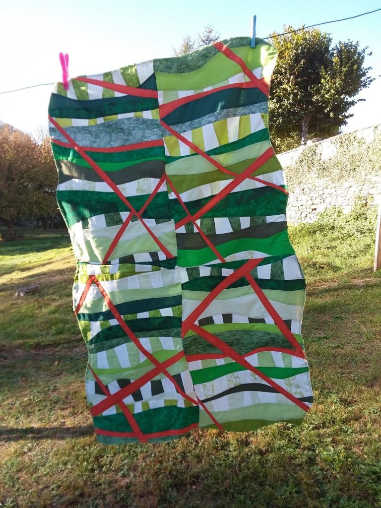 Promenade en forêt limousine, c’est un quilt dynamique qui donne envie d’emprunter les petits chemins de traverse…
