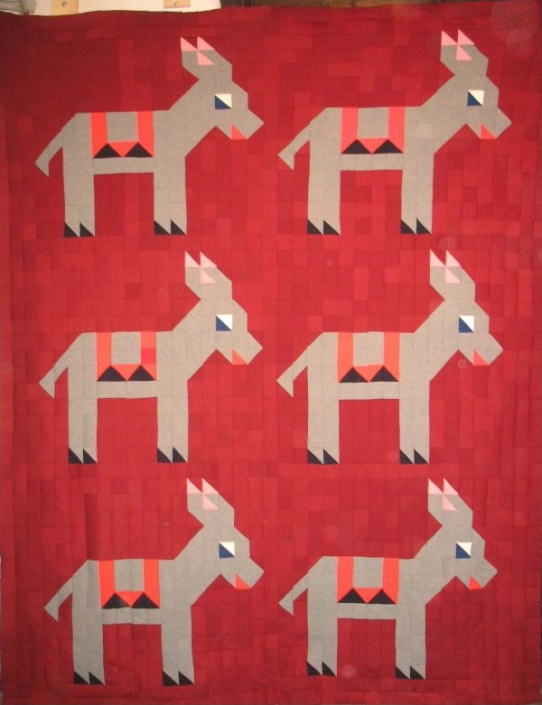 Aux États-Unis, c’est une vieille habitude de s’exprimer sur des quilts. Les orientations politiques en quilts devinrent populaires après la parution des modèles faits en carrés et demi-carrés dans le magazine Kansas City Star en 1931 : l’éléphant Ararat pour les Republicans, l’âne Giddap pour les Democrats.
