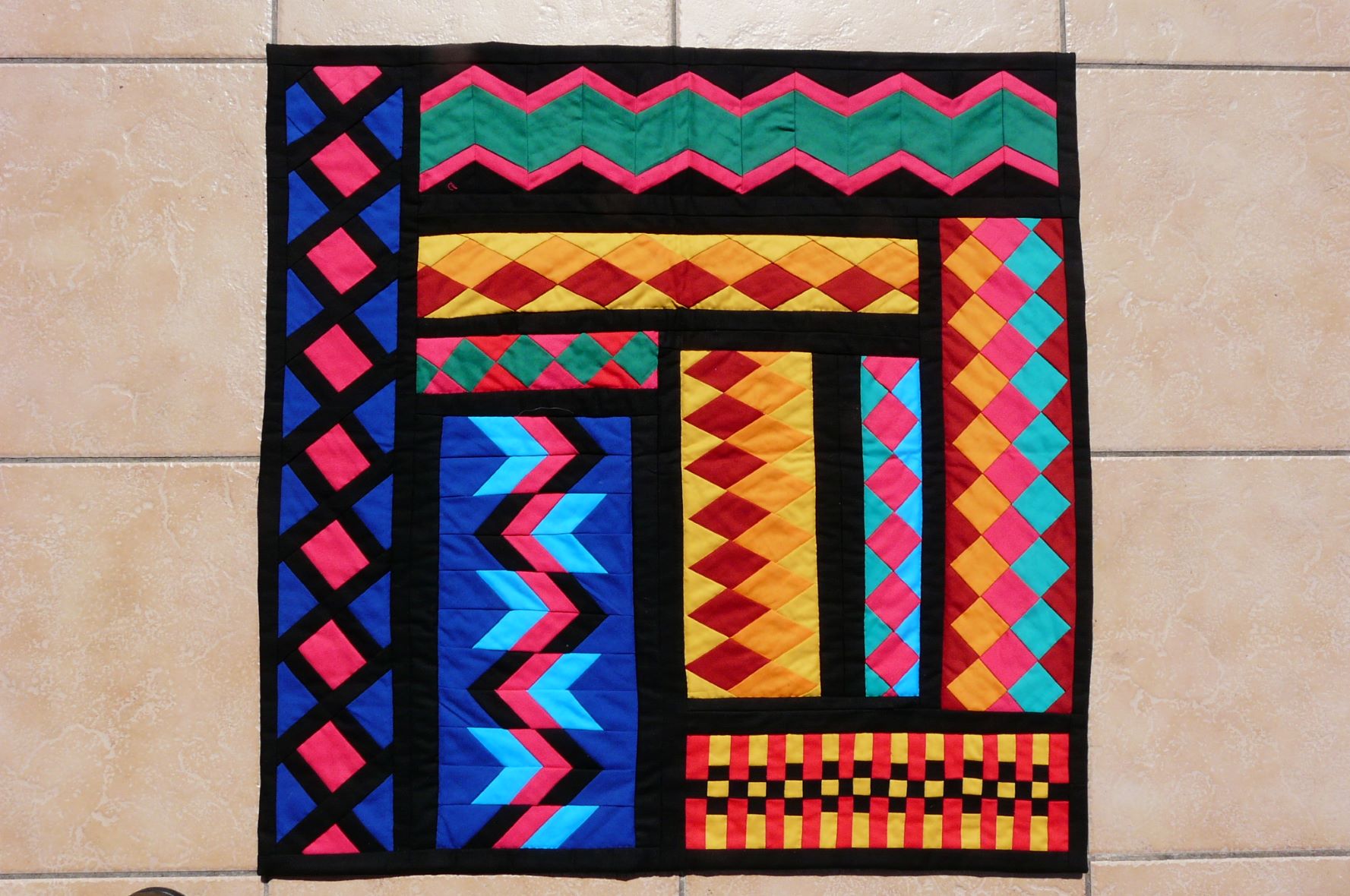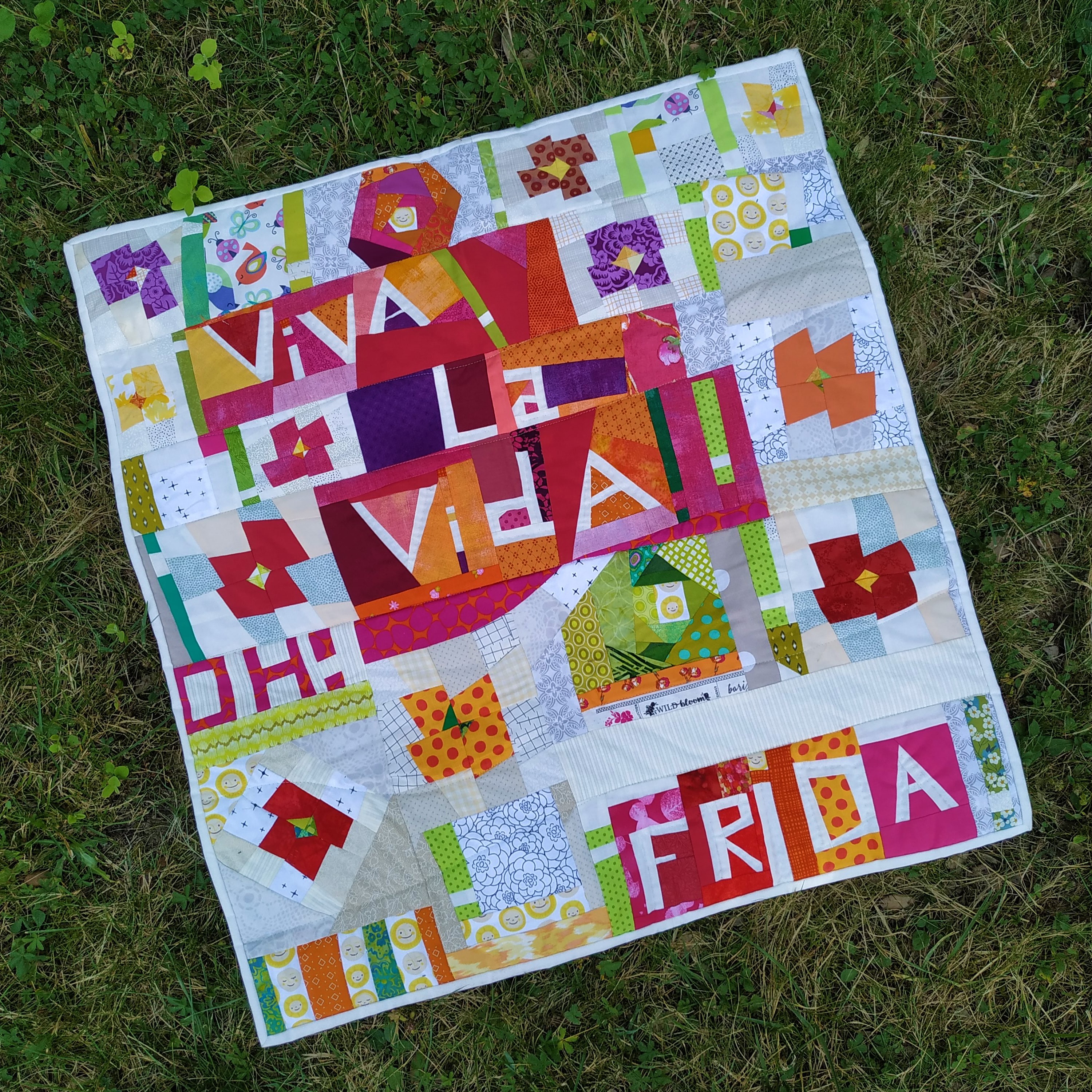 Ces quilts ont été exposés à Lacaze le 27 juin dernier et ont contribué à l’originalité de notre expo en soulignant notre sentiment de sororité. Est-ce facile de faire ces lettres piécées ? Oui… mais non. A vrai dire, certaines y arrivent facilement et font des lettres en deux temps trois mouvements. Si on n’y arrive pas tout de suite, c’est pas grave, ya pire dans la vie. Pour moi qui fais souvent parler mes quilts, c’est devenu très simple, et vous aussi deviendrez experte et vous direz ensuite c’est bon, je gère, laissez faire la pro ! Je suis impatiente de proposer cet exercice en stage, vous verrez, on va faire simple, vous aurez ensuite un sourire d’enfant en jubilant viva la vida !