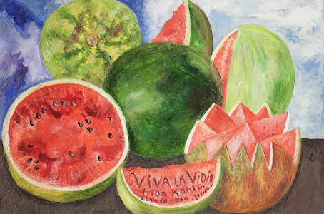 Vous pouvez retrouver divers articles que j’ai écrits sur Frida par ici comprenant des liens vers d’autres blogs comme ArtisAnne, qui ne se détache pas non plus de cette icône… Et souvenons-nous que cette artiste a souffert physiquement toute sa vie, mais elle n’a cessé de proclamer, jusque dans son dernier tableau : Viva la Vida !