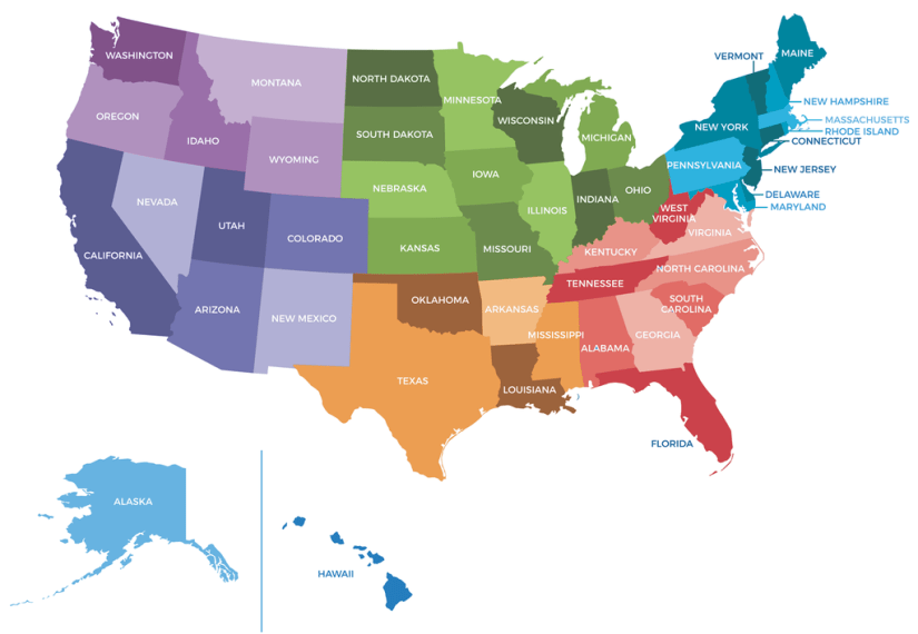 Le Nord-Ouest, de l’État du Washington au Wyoming, forme bien une unité géographique selon moi. J’aime l’association de l’Utah, du Colorado, du Nouveau-Mexique et de l’Arizona, avec le Nevada et la Californie… Adopté !
