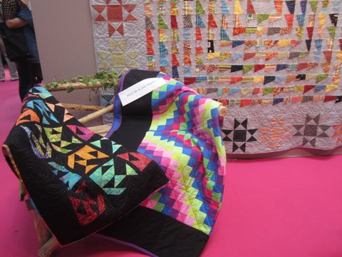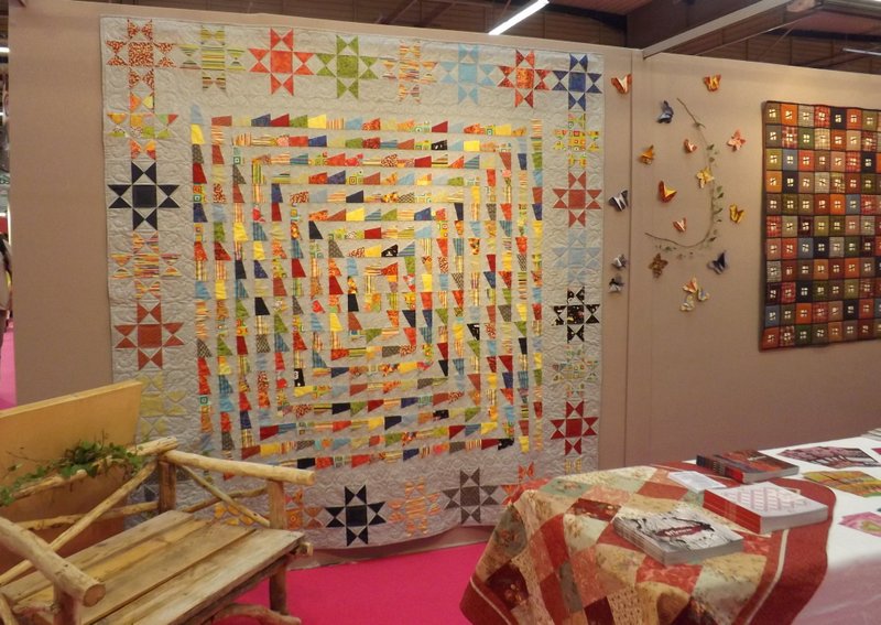 bien la formidable personne que j’imaginais. Ses quilts sont de futurs grands classiques, ils marquent d’ores et déjà le monde du patchwork. Elle était l’unique exposante de quilts modernes. Espérons que, les prochaines années, ce Salon leur fera une place plus grande.