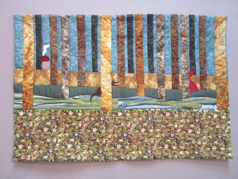 Participation de Fabienne à ce concours : on y retrouve ses ovales bien reconnaissables, son expertise de brodeuse, sa sensibilité féminine… L’Invitation au Voyage, thème du concours, est allée avec elle jusqu’en Amérique centrale avec trois Vierges de Guadalupe. Alors malgré un Arbre de Vie d’origine indienne interprété librement, cet ouvrage n’a sans doute pas été jugé assez « indien » pour le Jury. Il faut dire que la compétition était rude ! Mais ce qui vaut toutes les médailles, c’est qu’Amy Butler l’a distingué sur Facebook parmi ses préférés ! (les couleurs ne sont pas du tout bien rendues… pardon Fabienne).