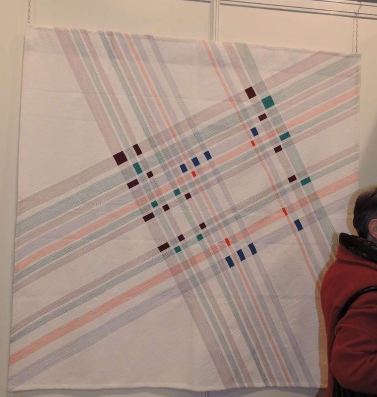 Clinging to the edge, Irene Roderick. Une brillante improvisation qui rappelle les jeux d’enfant.Très mal photographié et pourtant si beau ! Pivoted Plaid de Cassandra Weaver.