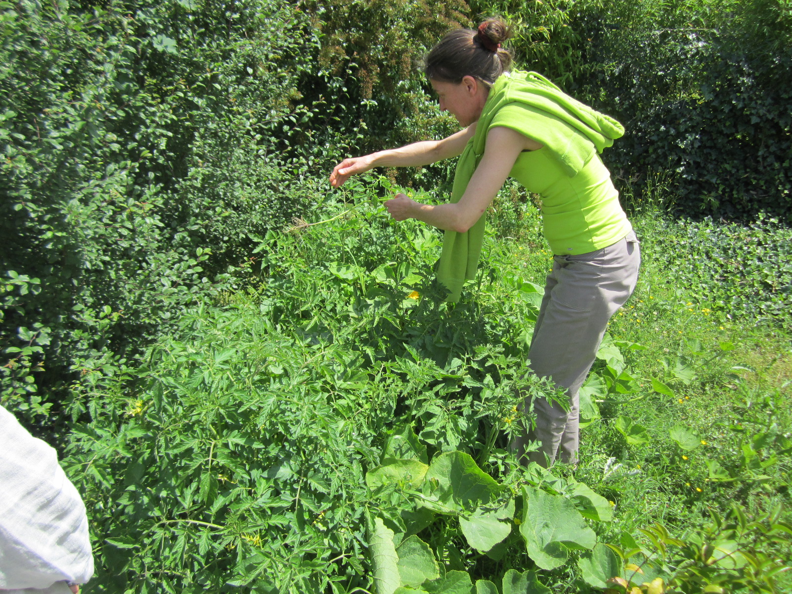Ensuite, la main verte : nous avons admiré le potager-lasagnes de Chantal… Ne riez pas, c’est une technique géniale ! Malgré le temps pourri, ce lopin de terre lui a fourni des dizaines de plants de tomates, potirons et autres merveilles… Plus de renseignements sur cette technique verte ici ! Encore l’art du recyclage…