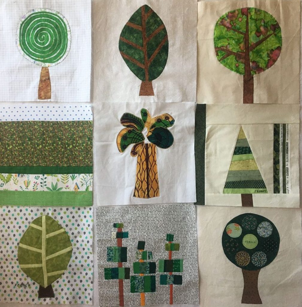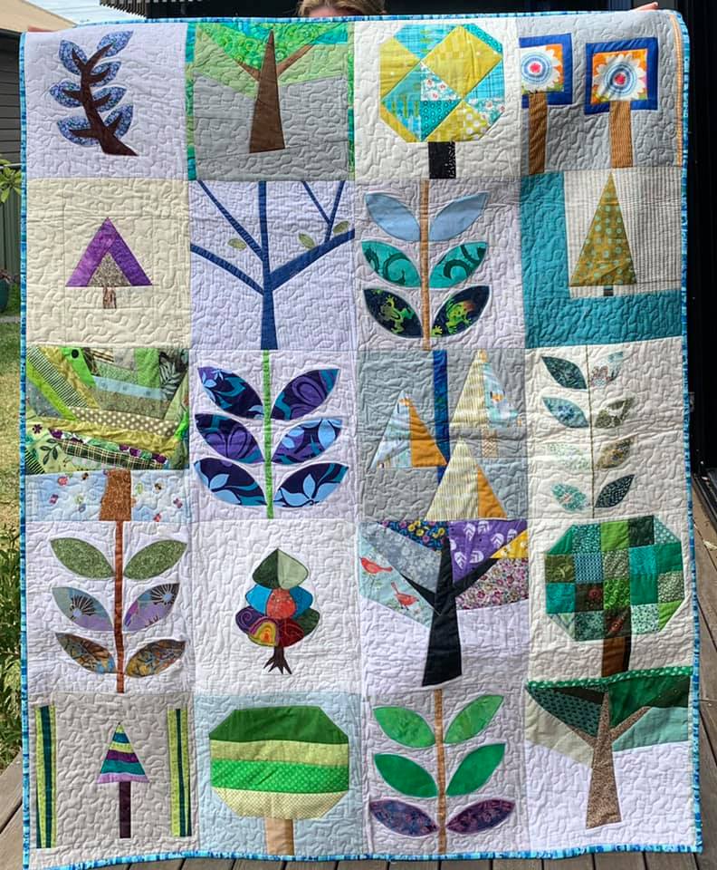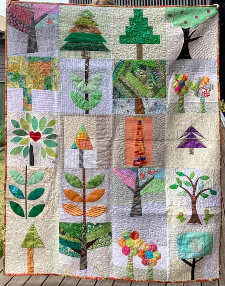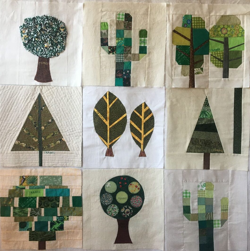 Personne n’a oublié les feux d’Australie en janvier 2020, qui donna lieu à l’envoi de plus de 15 000 blocs d’arbres pour faire des quilts aux sinistrés ! Un évènement qui comptera dans l’Histoire des quilts. Les quelque 750 quilts sont en cours de réalisation et leur but est de les distribuer aux sinistrés pour Noël. Les quilteuses australiennes font parfois face à de la lassitude et aux difficultés multiples exacerbées par les conditions sanitaires, mais elles continuent vaillamment à assembler les blocs, les quilter… Un appel aux donations leur permet de faire face aux achats des molletons et diverses fournitures, l’excédent éventuel sera reversé à la Croix Rouge. Quel engagement de leur part ! En France nous avions envoyé un bon nombre d’arbres, et nous avions également participé en grand nombre aux quilts pour le Japon, aux blocs de maisons pour Paradise (Californie)…