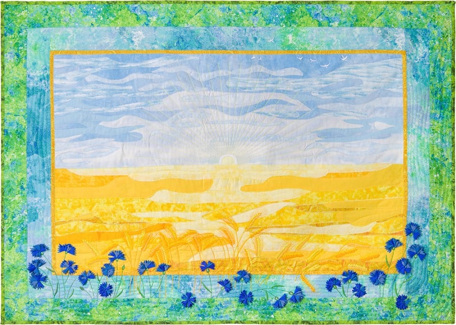 Ce drapeau a été fait l’année dernière, pendant les célébrations joyeuses des 30 ans du pays libre. Sasha, quilteuse moderne ukrainienne, vend à présent ce petit modèle parce qu’on lui demande, du monde entier, comment aider. Elle est dans l’Ouest du pays, pour le moment épargné, mais qui abrite déjà plus de 40 000 réfugiés. Tout l’argent récolté sera pour leur venir en aide. C’est par ici, 5,66€ le patron ce jour (prix fluctuant en €).