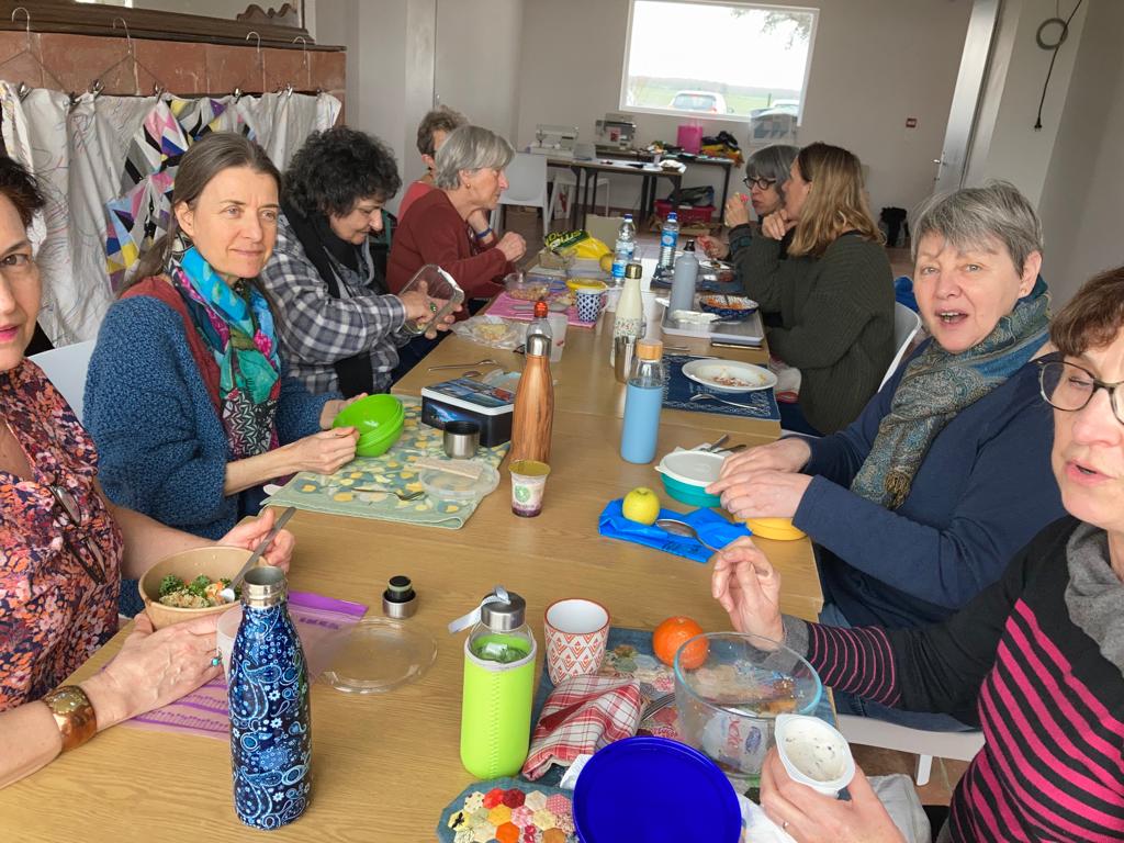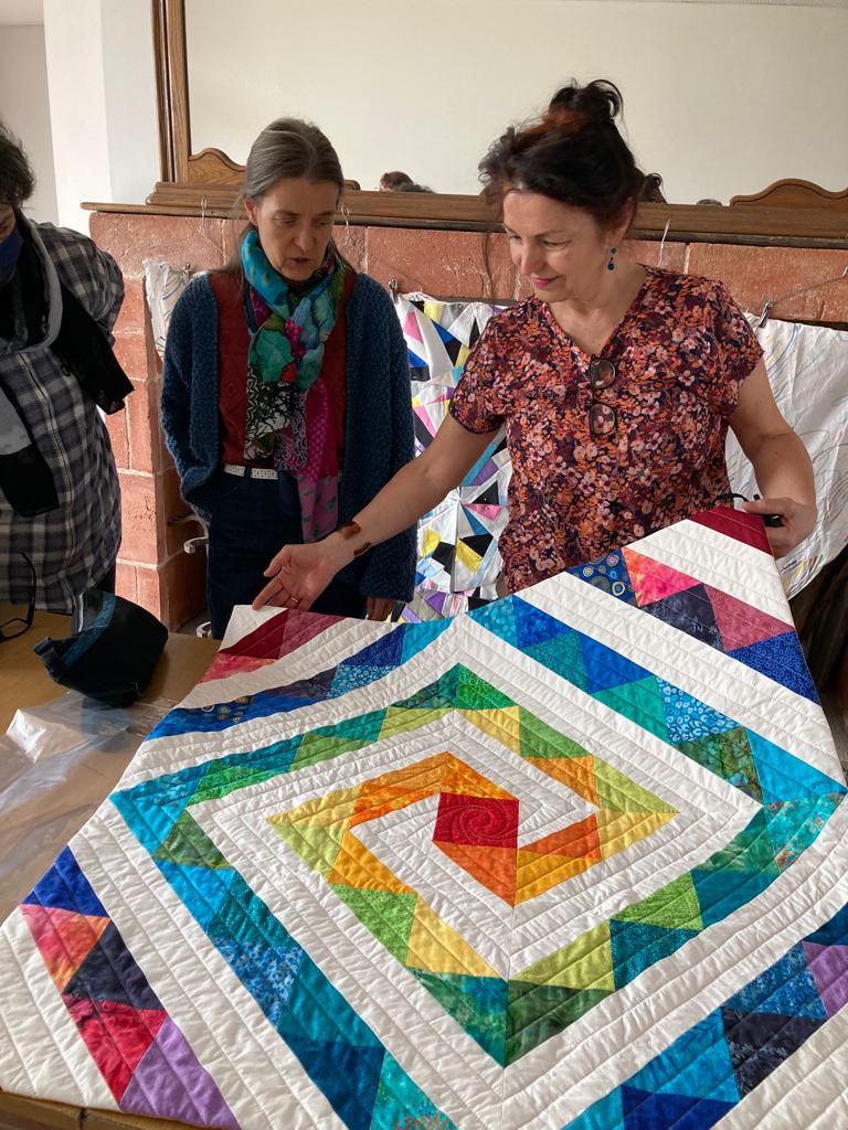 Un indicible bonheur de retrouver mes amies, de plonger ensemble dans nos projets avec des tissus et des couleurs… Nos Étoiles Uniques, faites grâce à Lindlee de @Plainsandpine quilts, sont toutes au moins sous forme de top, il reste à les quilter… Elles seront exposées à Lacaze les 25-26 juin prochains lors des expositions ARTPELHOT, avec Dimitri Vontzos, Marie-Christine Hourdebaigt, des quilts-météo… La fête au village ! D’autres en-cours faits en commun, que nous vous montrerons terminés fin avril, nous donnent la fièvre du vendredi, sans compter nos divers ouvrages personnels !
