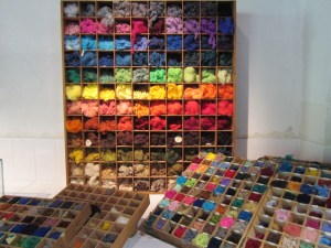 Actuellement, les Abeilles et moi travaillons avec des tissus imprimés au tampon et teints artisanalement. Je suis impatiente de voir, dans un an, la tenue des couleurs à la lumière. J’aurais tendance à être plus indulgente pour ces tissus teints avec des pigments naturels et pourtant je suis presque sûre qu’ils résistent mieux que certains de mes tissus de patchwork. Les tissus dits artisanaux ne garantissent pas la qualité (voir ici !), pour le travail industriel comme artisanal, c’est plutôt une question de savoir-faire et de respect du travail bien fait.