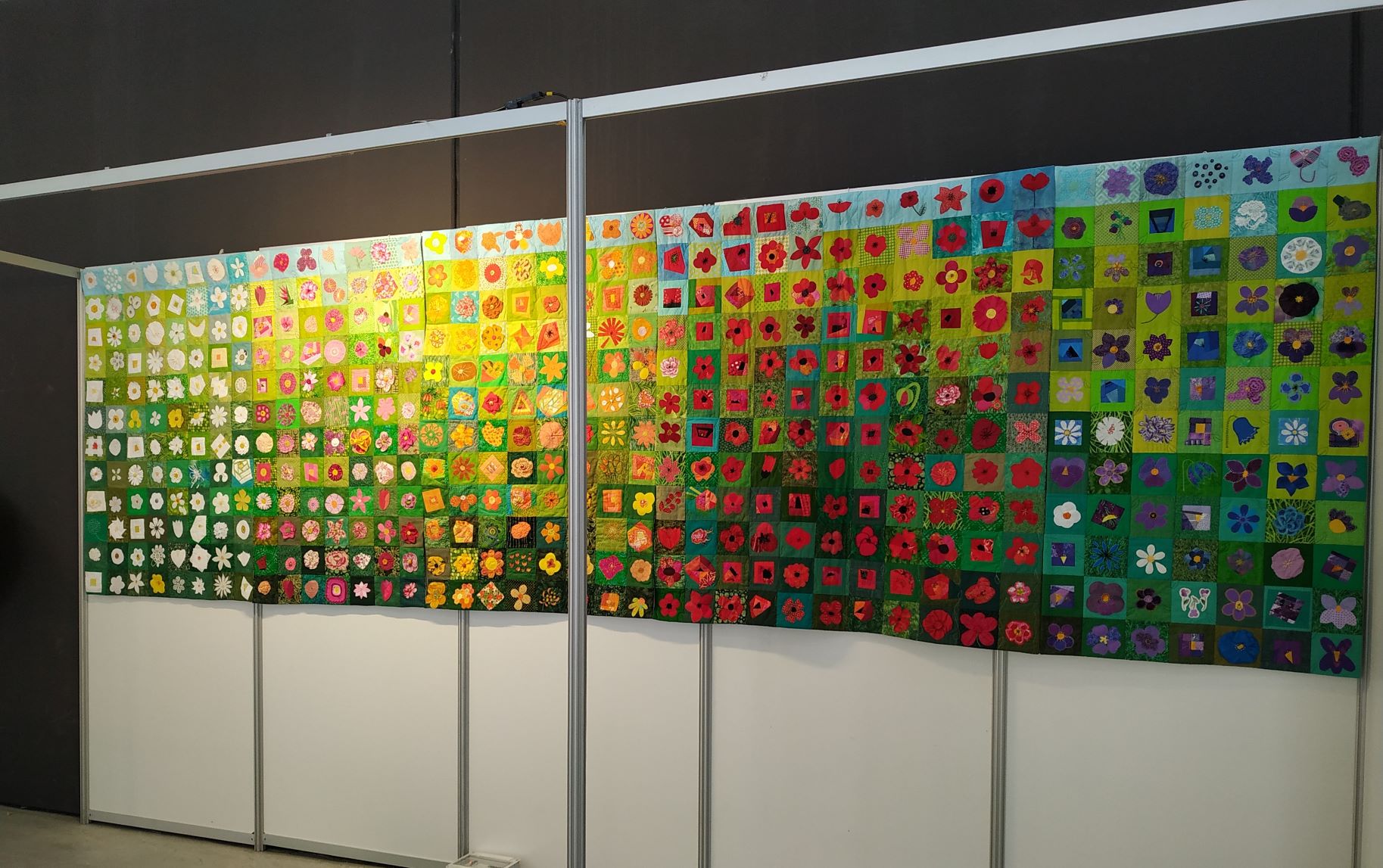 Vous pouvez voir nos Mille-Fleurs 2021 dès aujourd’hui au Salon des Tendances Créatives de Toulouse, c’était l’ouvrage-mystère annoncé qui vous incitera, j’espère, à aller voir le chef-d’œuvre de l’an 1500 au Musée des Abattoirs ! Nous avons mélangé de nombreuses techniques, travaillé main et machine, appliqué, brodé, improvisé, et nous sommes ravies du résultat 😊.