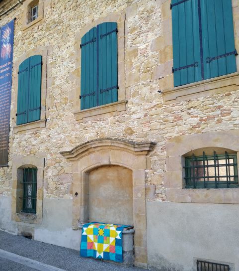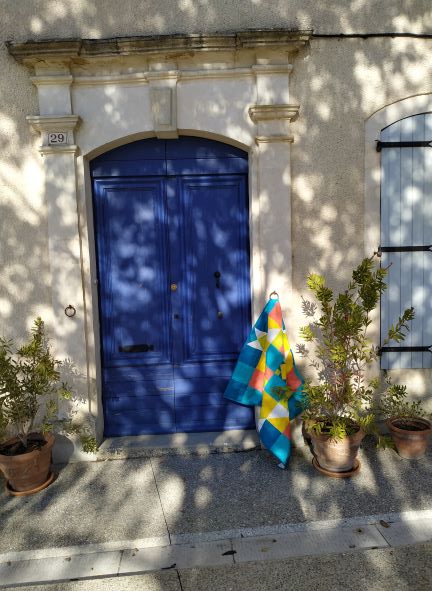 Samedi, nous avons fait un tour dans le Lauragais, là où poussait naguère l’Isatis tinctoria, la fameuse plante qui donnait ce si beau bleu européen qui fit la fortune de Toulouse, Albi, Carcassonne. Une halte dans un des beaux villages du coin : Saint-Félix-du-Lauragais (31), m’a permis de faire quelques photos du quilt Morning Sunrise version baby et replonger dans l’histoire de ce pays vallonné où j’ai des attaches familiales.