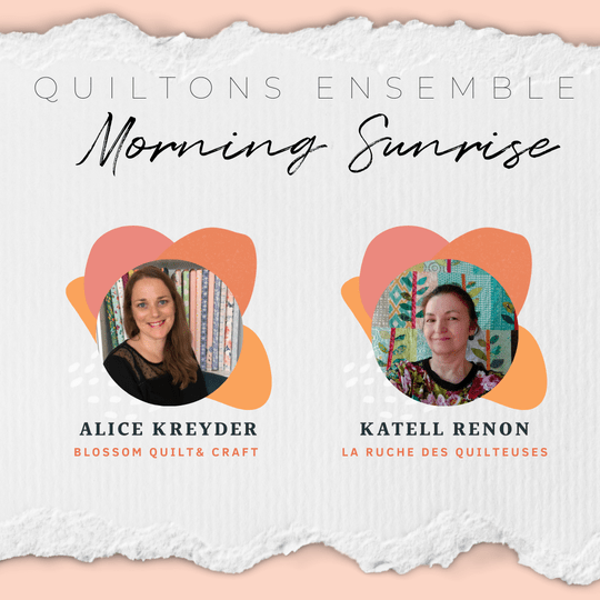 Ce projet Morning Sunrise me tient fort à cœur, j’ai pris beaucoup de plaisir à faire le top (je commence tout juste le quilting), et au premier rendez-vous le 4 octobre, je vous ferai voyager en vous présentant mes quatre options de gammes de couleurs :