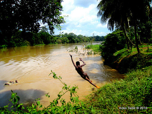 En remontant le fleuve de la Comoé qui se jette dans la lagune de Grand-Bassam, on est dans la savane, avec une forêt-galerie presque tout au long, riche réservoir de biodiversité. Je me souviens de ma visite du Parc National de la Comoé, l’émotion de voir en liberté de majestueux animaux. Hélas, il n’y aurait plus que 250 éléphants, victimes du braconnage (toujours pour les défenses d’ivoire, malgré l’interdiction de vente), et surtout en raison du défrichage intense pour exploiter le bois et récolter du cacao, du café, des ananas, des bananes, des noix de cajou… tout ce dont nous sommes friands ici aussi.