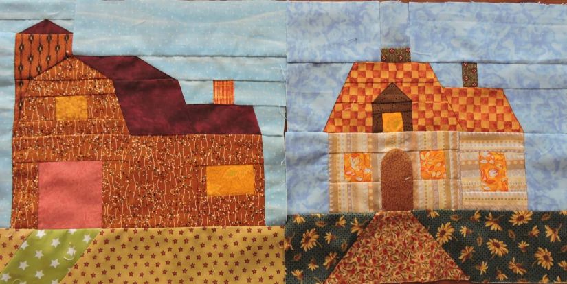 Les Abeilles font un vrai petit village de maisons à offrir aux quilteuses de Paradise, nous nous donnons encore une semaine avant d’expédier le tout à Cécile (Patchwork Inspirations). Kristine, Maïté, Evelyne, Christophe, Eliane, Andrée, Simone et moi avons déjà fait des blocs, d’autres arriveront vendredi prochain ! Toutes sont à 27 cm, c’est l’équerrage des photos qui fait paraître les deux dernières plus grandes 🙂