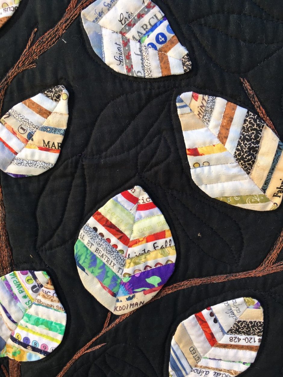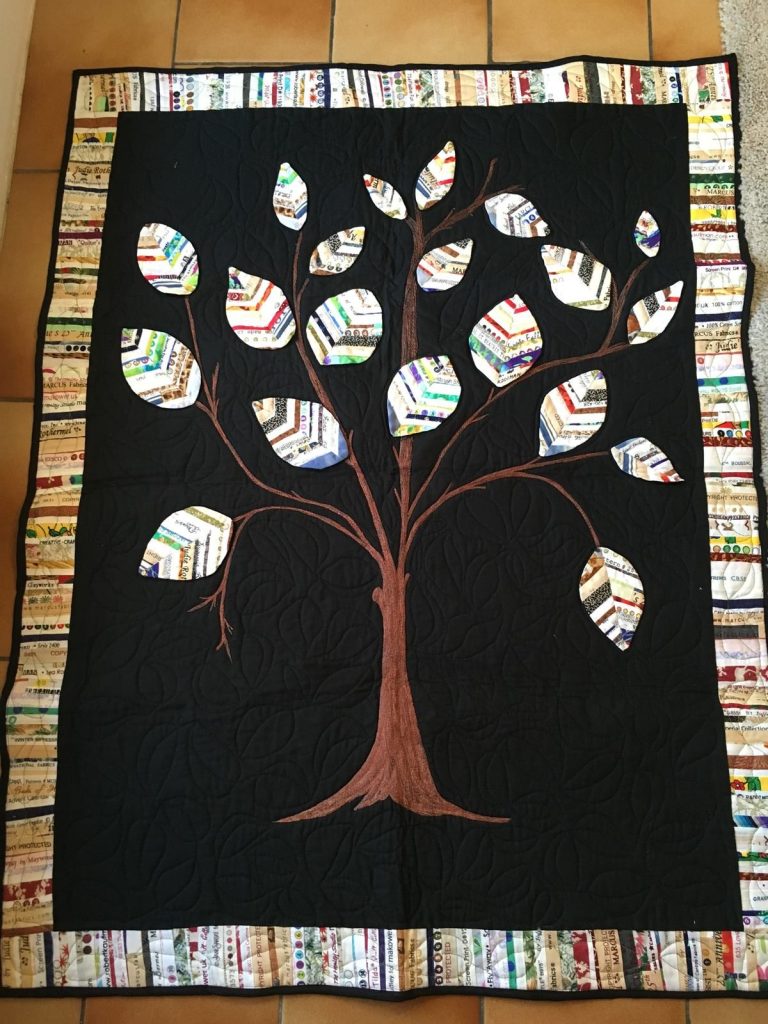 Eliane de Vitrolles était une des enthousiastes participantes à la JA organisée par FP13 samedi dernier. Comme j’avais exposé mon arbre de vie en lisières, elle m’a parlé de son quilt qui représente également un Arbre où elle a aussi utilisé des lisières ! Alors bien sûr je lui ai demandé des photos… Comme vous pouvez le voir, il est magnifique !