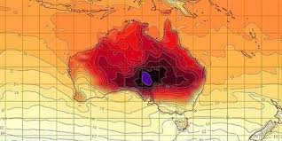 Nous sommes choqués par les feux en Australie, ils sont dus à l’extrême chaleur du continent où déjà, en 2013, les géographes avaient ajouté une nouvelle couleur pour figurer la tranche 52-54° :
