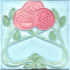 C’était la Belle Epoque, et on donnait souvent aux petites filles de jolis prénoms de fleurs. Rose était un prénom emblématique de cette période, on nous l’a rappelé dans le film du Titanic ! Ma grand-mère, née en 1901, portait ce beau prénom aussi. Voici quelques représentations de roses style 1900, en commençant par des céramiques de l’Ecossais Rennie Mackintosh.