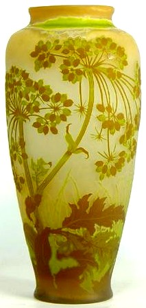 Vase d’Emile Gallé en verre gravé. Ecole de Nancy. Les fleurs des champs sont mises en valeur.