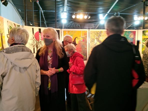 Tout le monde parlait de cette exposition : mais oui, c’est du tissu !! Nous étions entourées de personnes habituées aux circuits des arts habituels (dits majeurs…) et cet art textile les a enthousiasmées au-delà de ce qu’on peut imaginer. Le stand ne désemplissait pas, beaucoup de personnes venaient et revenaient… surtout des hommes ! Le talent de la solaire Béatrice a touché le cœur du public, rêve réalisé et mission accomplie.