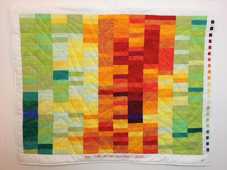 Chantal vient de terminer son quilt-météo ! Son premier de 2020 a été exposé plusieurs fois, et elle a organisé plusieurs expos dans notre petite ville de Pibrac. Fan de ce travail, elle en a commencé un nouveau pour 2024…