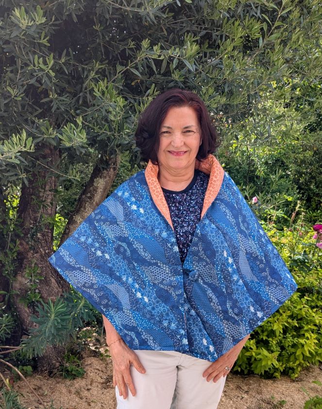 Un beau jour sur internet, il y a bien 10 jours, je suis tombée sur le modèle nommé Quilted Hug Shawl, un châle quilté qui entoure bien la personne, recommandé notamment pour les personnes en fauteuil roulant qui ont souvent bien froid. Tout de suite, j’ai pensé à ma mère qui est dans cette situation, et à la Fête des Mères française qui approche…