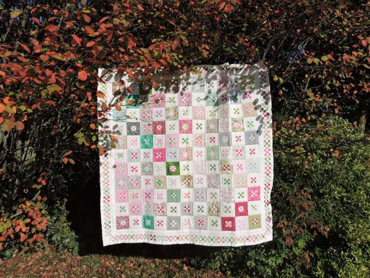La préparation de mon livre a été l’étincelle pour me faire terminer le quilt. Non, je n’ai pas fait les blocs manquants, j’ai biaisé le problème en complétant le top par des broderies afghanes achetées sur un stand de l’association Guldusi, créée par Pascale Goldenberg. Les couleurs allaient bien ensemble… et le thème de l’entraide de femme à femme reste central.