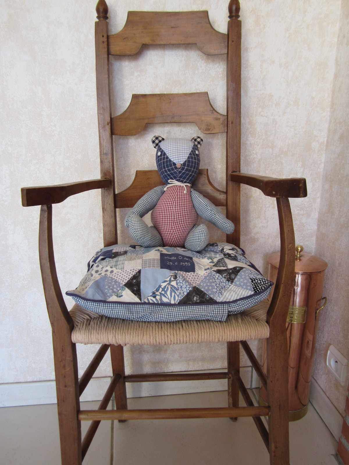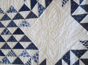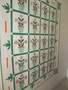 En visite chez Maïté l’Abeille, j’ai de nouveau admiré dans son salon un quilt qu’elle a fait bien avant notre rencontre ; elle habitait alors à Nantes et avait la grande chance d’avoir Renée Ferré* comme professeur.