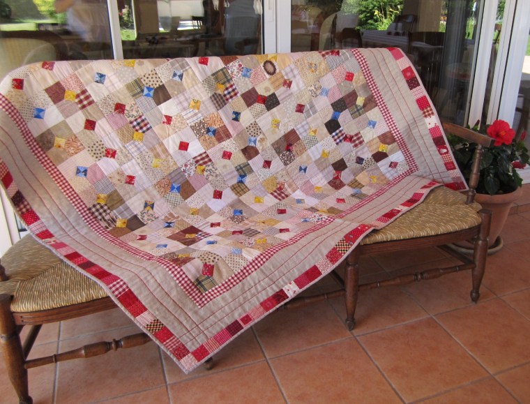Rarement sont réunies ces quatre conditions, mais certaines y arrivent quand même ! L’important toutefois est de s’amuser, c’est un exercice de coloriste passionnant que je vais peut-être lancer l’année prochaine chez les Abeilles. Si vous souhaitez vous aussi approfondir ce challenge, admirer d’autres Charm Quilts extraordinaires réalisés en France dans les années 90, essayez de vous procurer un des livres de Smaranda Bourgery :