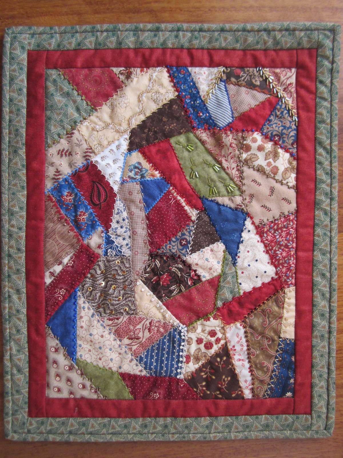 Dans le numéro des Nouvelles du Patchwork cité plus haut, le Redwork est présenté « comme le fil rouge entre l’Europe et l’Amérique ». En effet on nous indique que « l’idée de réaliser un patchwork à partir de ces blocs brodés dut germer tout naturellement dans l’esprit des quilteuses invétérées ». Ces pièces sont devenues rares et très recherchées aujourd’hui. Ces quilts, dont certains blocs étaient brodés parfois malhabilement par un enfant, dégageaient un charme particulier.