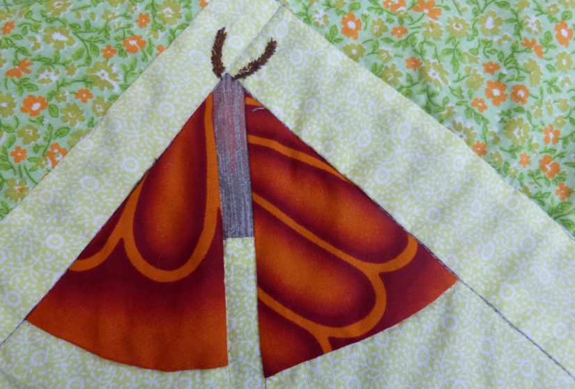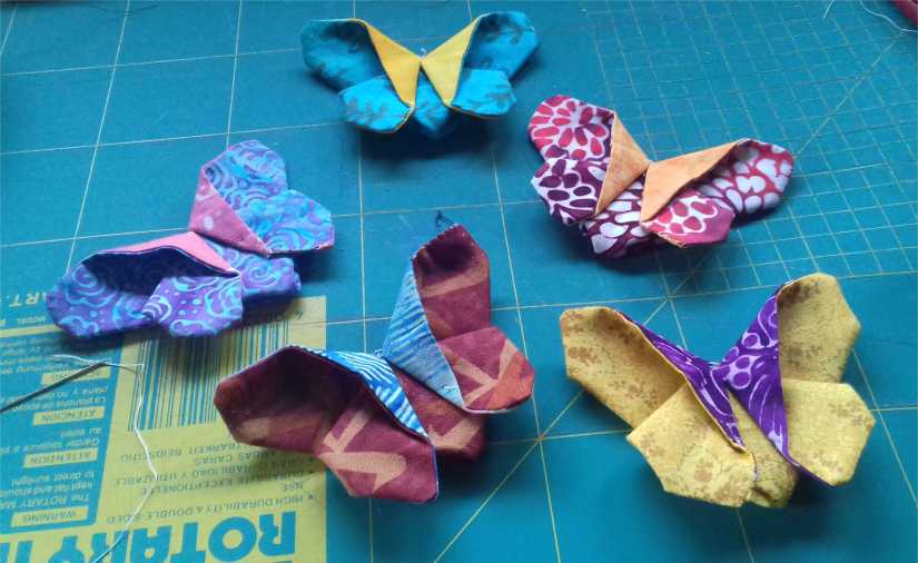 Aux yeux de ma petite fille, je manquais de rapidité et d’efficacité, c’est donc elle qui, après avoir choisi les tissus, a préparé tout un vol de papillons et les a dispersés sur l’ouvrage.