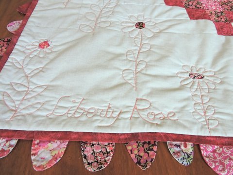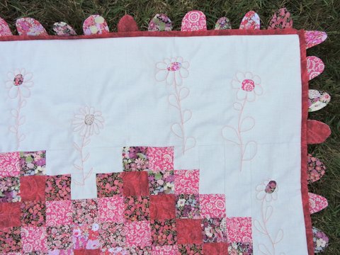 Avant une mini-pause de la Ruche pendant une semaine, j’ai le plaisir de vous présenter un quilt terminé cet été pour ma nièce Rose, née voilà un an.