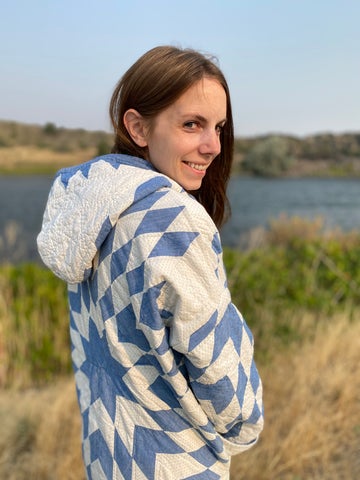 Avec son mari, son enfant et son chien, Lindlee Smith a emménagé plus à l’Ouest, toujours dans le Montana. Elle a une formation de comptable, mais a toujours voulu avoir, comme dans son enfance, une maison où chaque lit a son quilt, où l’ambiance est simple et confortable. Alors comme plusieurs d’entre nous, elle est aussi marcheuse, jardinière et quilteuse !