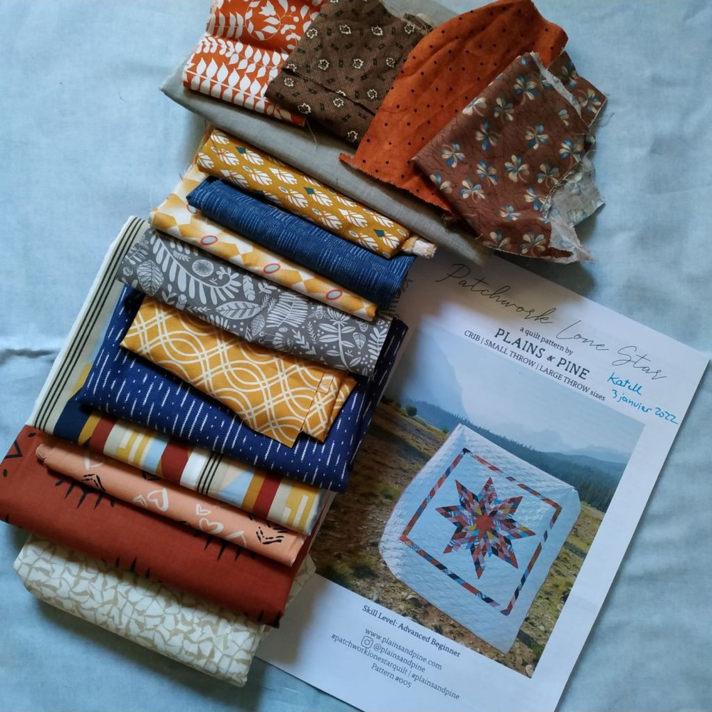 Alors me voilà embarquée dans ce projet, que j’espère faire vite et bien ! Si cela vous intéresse d’embarquer dans ce « quiltons ensemble » (chacun fait son quilt à la maison et on partage les photos de son avancement sur Instagram avec l’étiquette #patchworklonestarsal) allez sur Instagram et voyez le compte de @plainsandpine.
