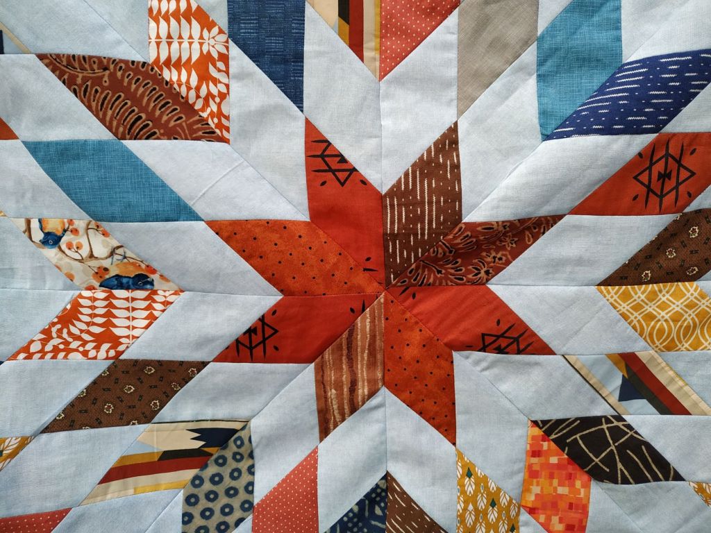 Faire ce quilt en suivant la cadence du groupe, c’est d’abord se familiariser avec la technique des étoiles à 8 branches. C’est aussi se donner des missions hebdomadaires sur 6 semaines, pour arriver au bout sans difficulté.