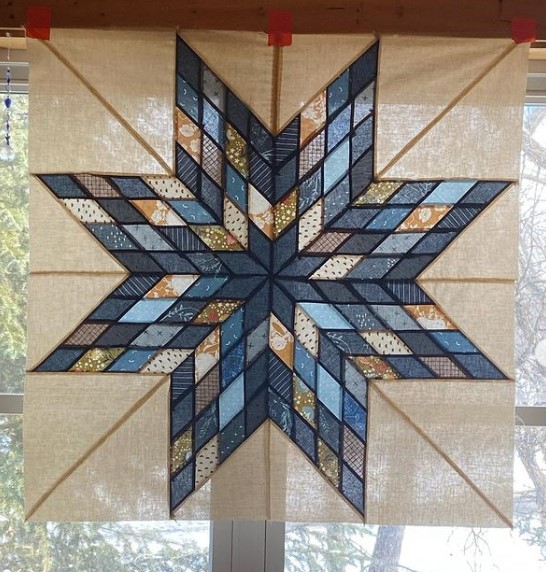 Big Sky Star Quilt, Lindlee de @plainsandpine. Big Sky est le surnom de l’État du Montana, là où on peut admirer pleinement l’immensité du ciel.Une merveille !