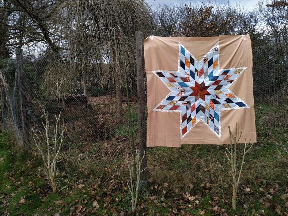 J’avais quelques jours de retard, mais je continue ma Lone Star ! J’ai eu un doute, trop peu de contraste entre l’étoile et le fond choisi. Alors j’ai ajouté une bande qui fait le tour des branches :