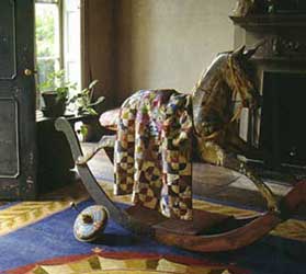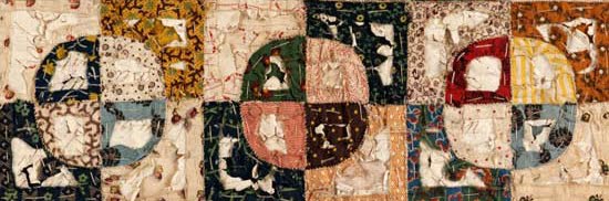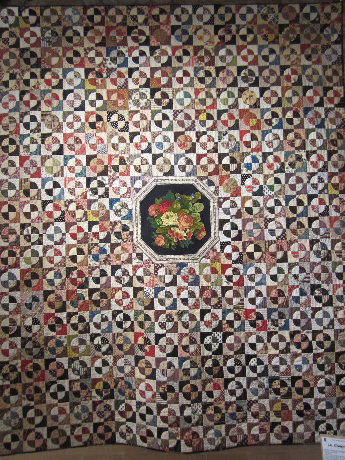 France Aubert expose son fameux Civil War Sampler Quilt, élaboré semaine après semaine grâce à l’initiative de Barbara Brackman. En compagnie de très nombreux quilteurs du monde entier (490 inscrits sur Flickr!), chacun a cousu une cinquantaine de blocs en commémoration des 150 ans de la guerre de sécession. France Aubert en a ajouté une quarantaine, dans le respect de la tradition, en se référant à plusieurs livres de référence.