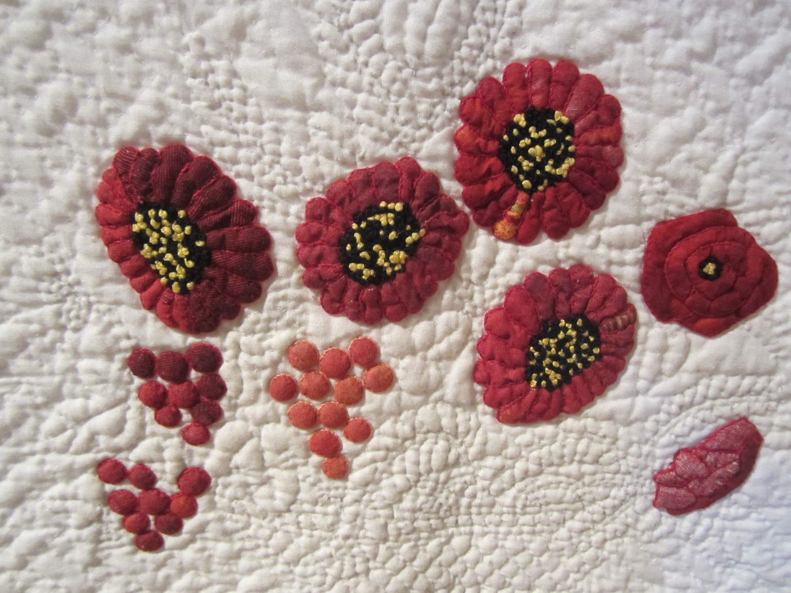 Traboutis de Pénélope, combinaison de trapunto, de boutis, d’appliqué, de broderies… Un travail unique déjà entré dans la légende des quilts !