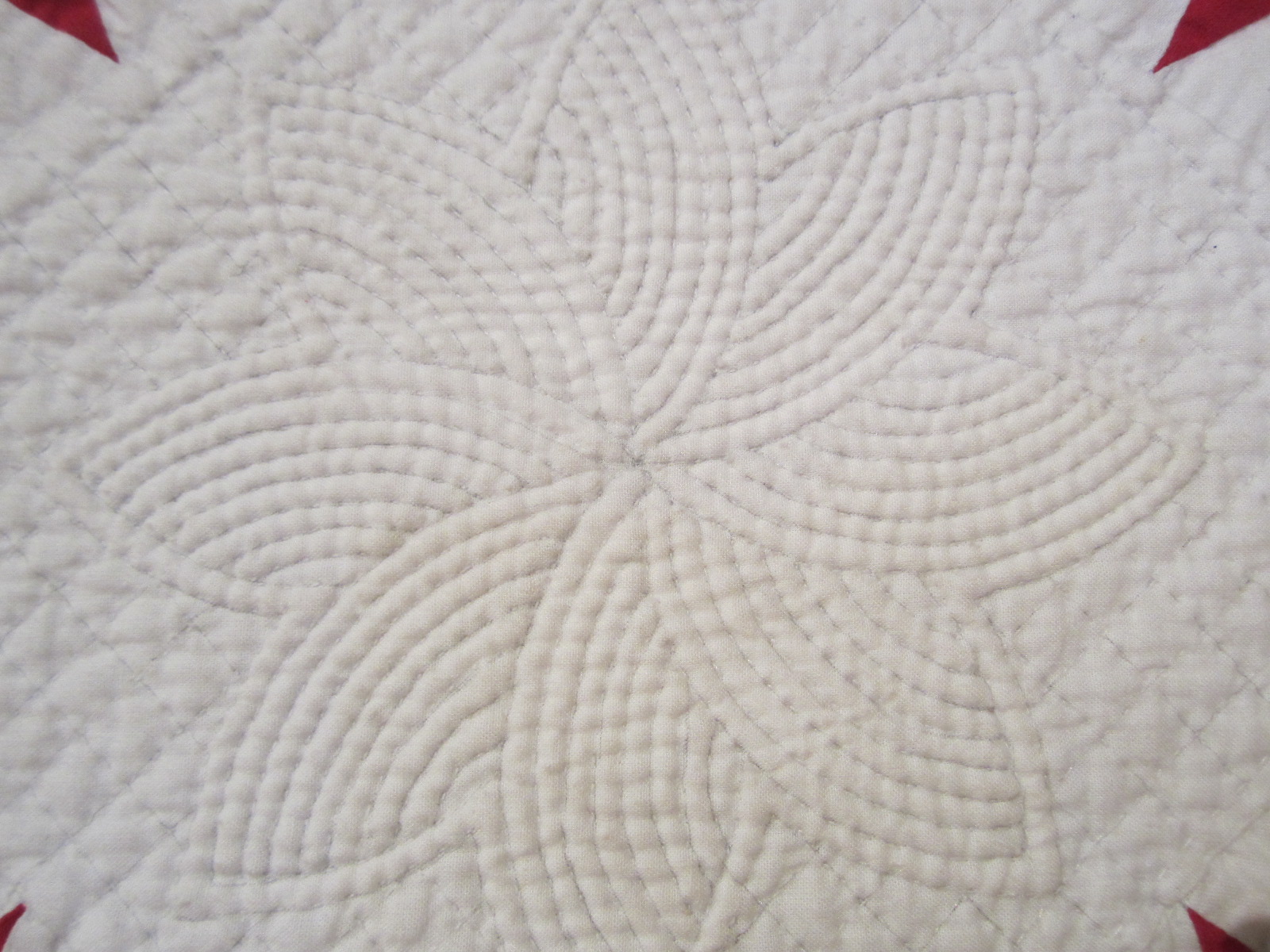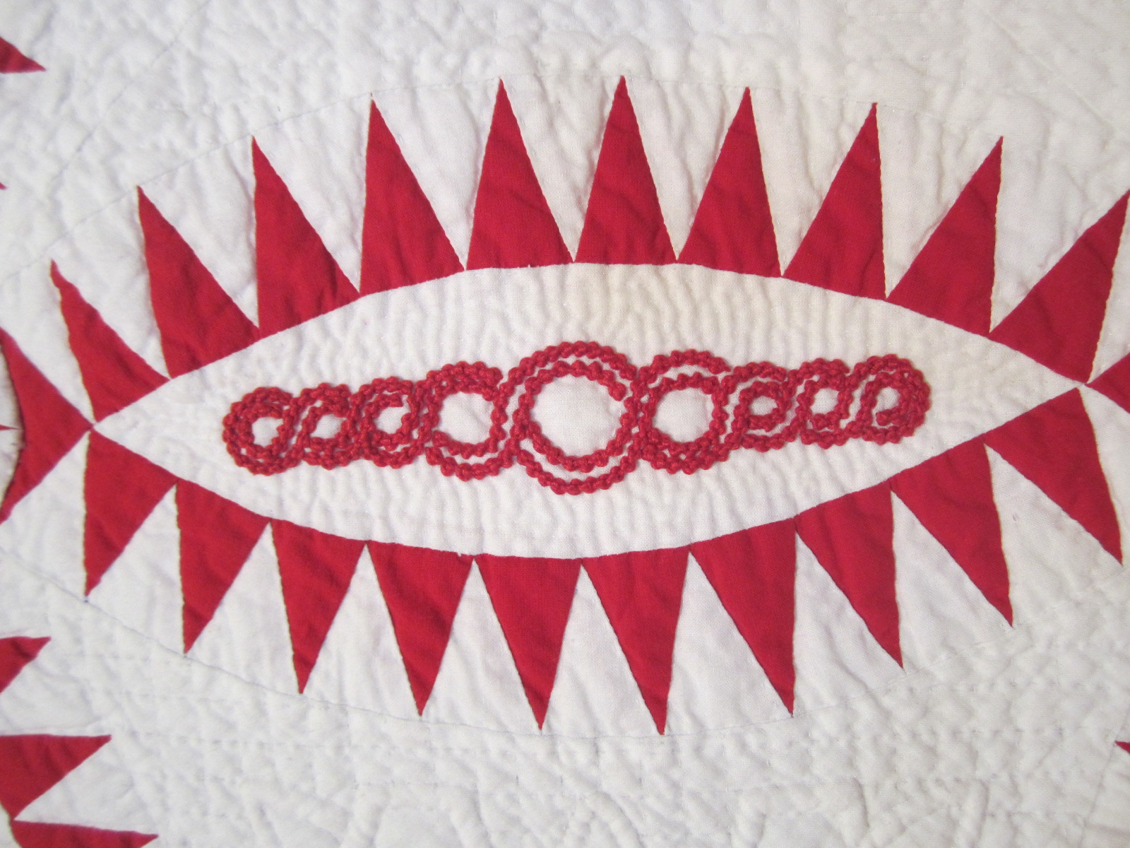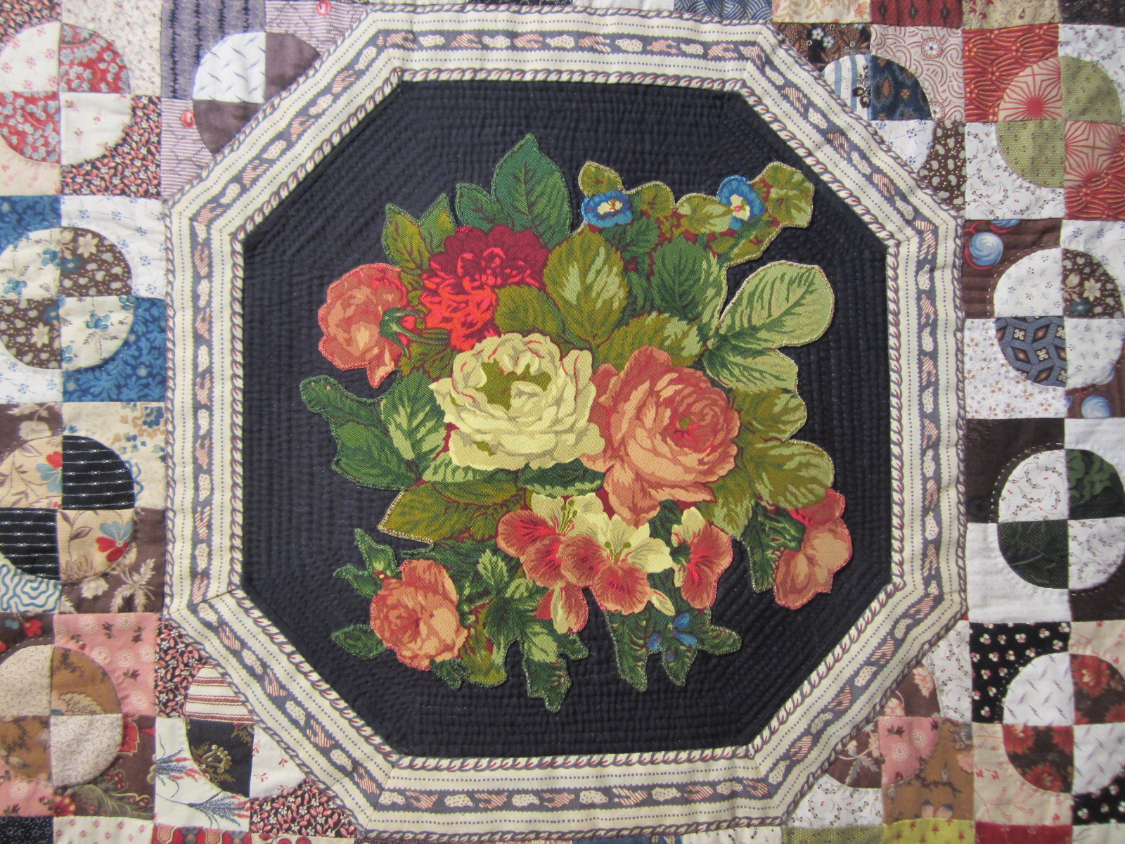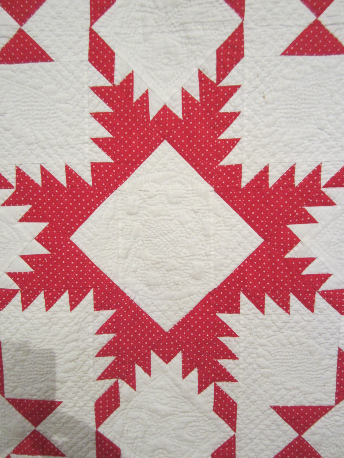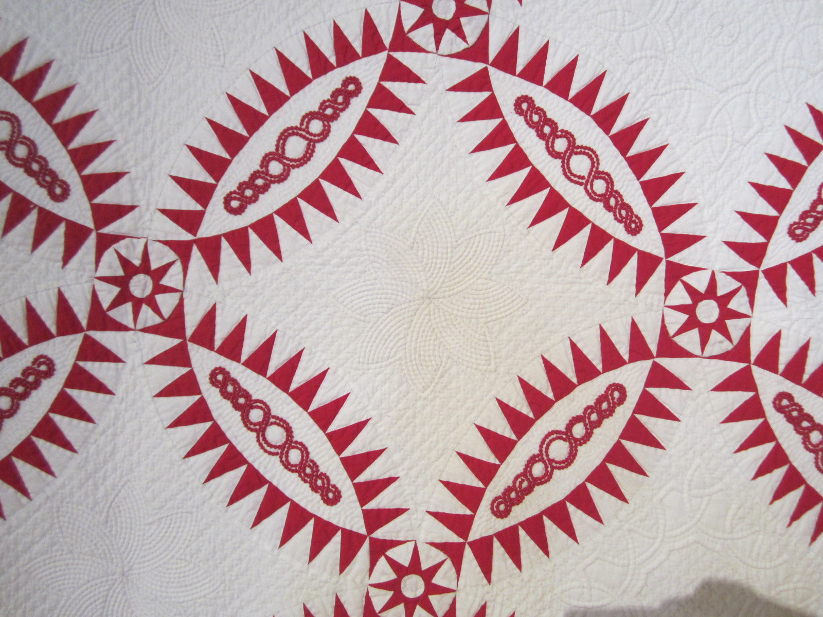 Voici l’original à la gloire d’un Président des Etats-Unis de la fin du XIXe siècle (Stephen Grover Cleveland), le centre rouge et blanc est donc l’ajout décoratif de la quilteuse finistérienne :