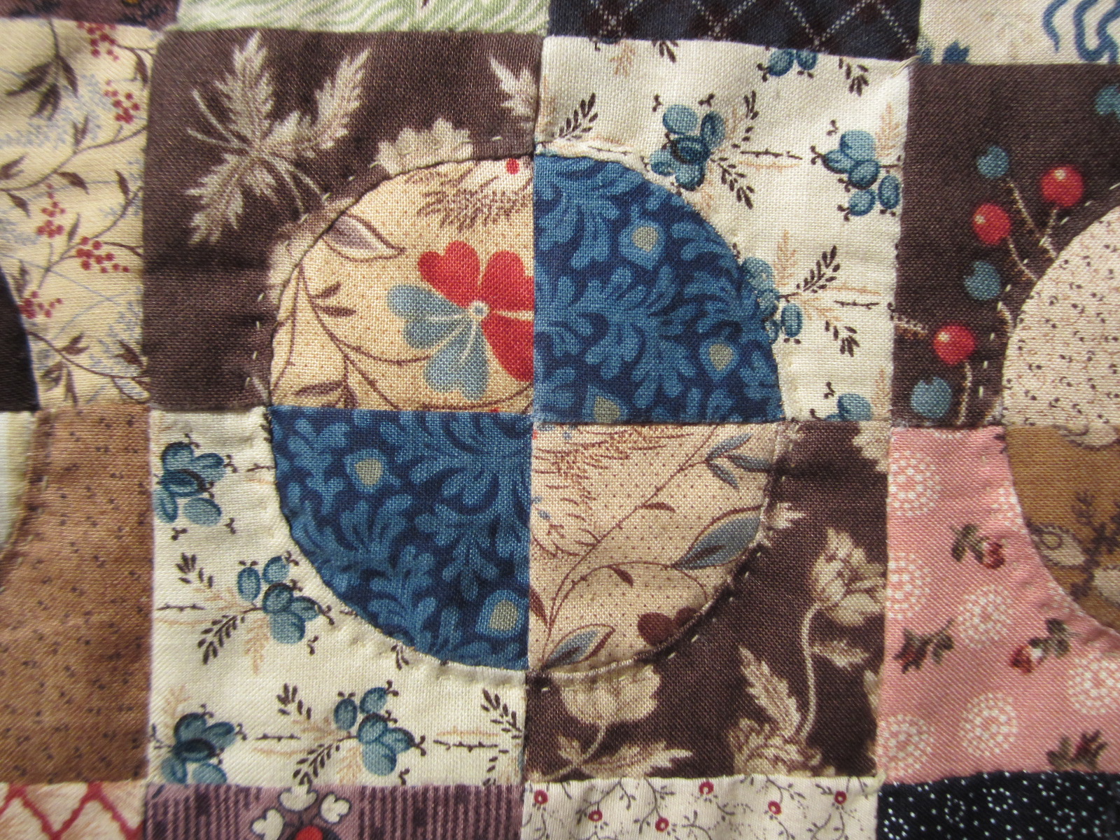 Le sien est entièrement cousu à la main, quilté selon sa méthode favorite de « quilting-as-you-go » (une technique permettant de quilter par groupes de blocs, avant la finition du top complet), avec les superbes tissus de la période « Civil War » édité par Nancy Gere, Barbara Brackman et Judie Rothermel. Plus d’informations sur son blog !