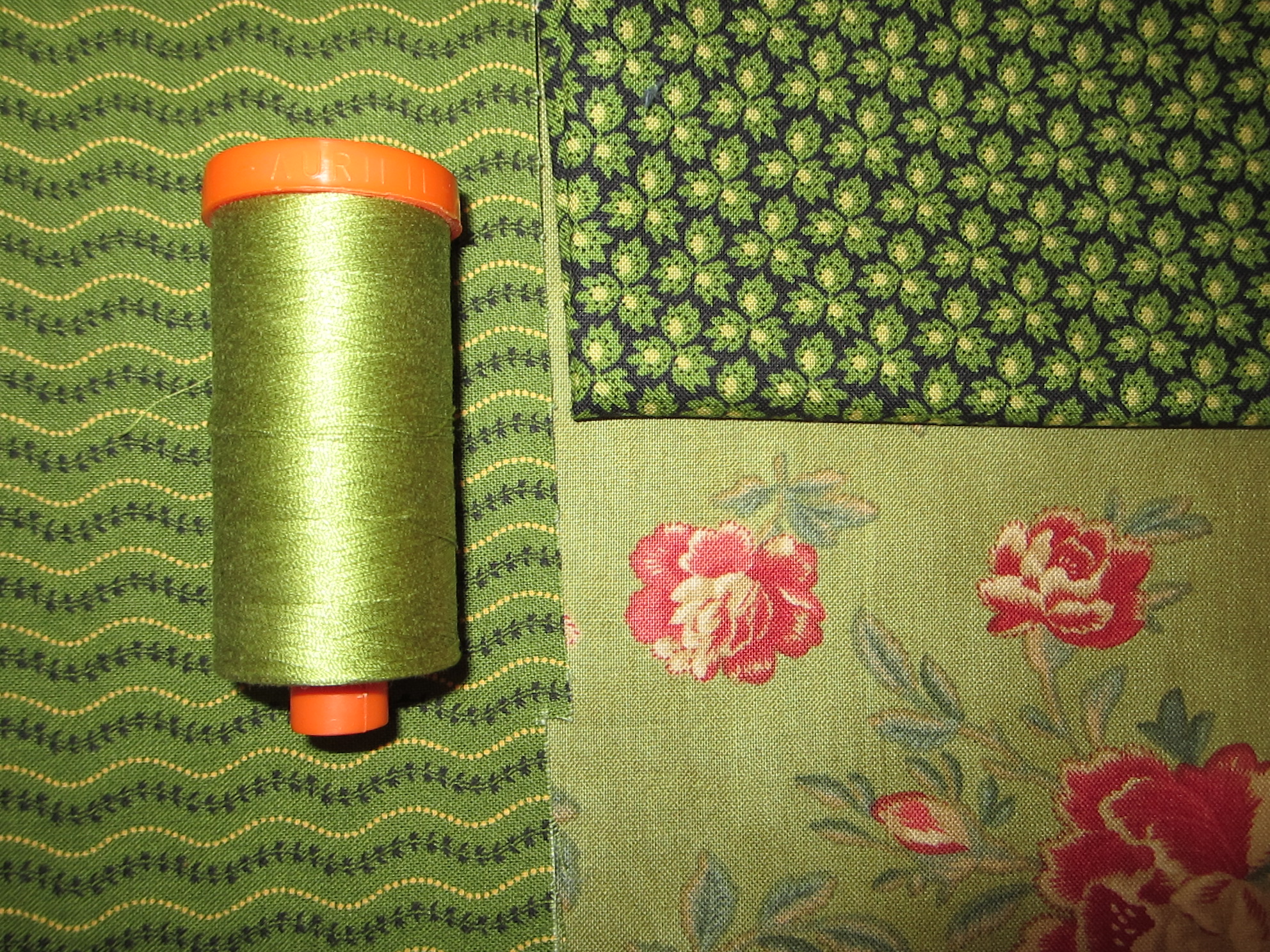Quelques verts poison, dont le fil Aurifil mako 50 n° 5016, plus poétiquement baptisé « Péridot », une pierre semi-précieuse de ce vert-jaune particulier