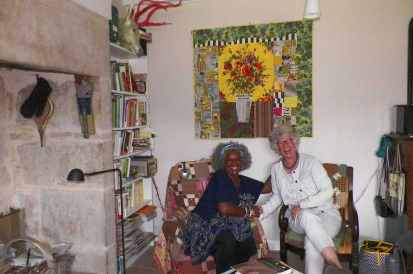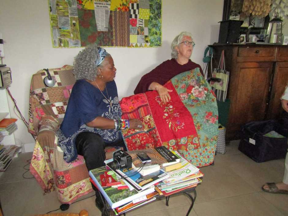 Les noms des « filles du Rouvray » vous disent sûrement quelque chose, je vous en parle dès que l’actualité s’y prête : Will Vidinic, Cosabeth Parriaud, Marie-Christine Flocard, Joëlle de Baillencourt, Christine Meynier, Inès Travers et sans doute bien d’autres personnes… Will vient d’animer une Journée Régionale de l’Amitié France Patchwork à Périgueux qui restera longtemps dans les cœurs des chanceuses présentes, Cosabeth vient d’exposer de nombreux quilts pleins de gaieté à Paris, mais ce sont deux autres de ces copines que j’ai eu la chance de rencontrer jeudi.