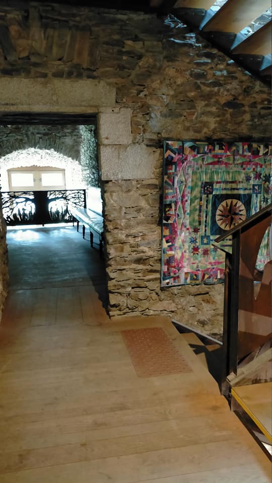 Le château date de la Renaissance et a été remarquablement rénové ; ses murs de lauze d’un gris chaud (le fameux taupe des tissus japonais peut-être) met les quilts parfaitement en valeur.
