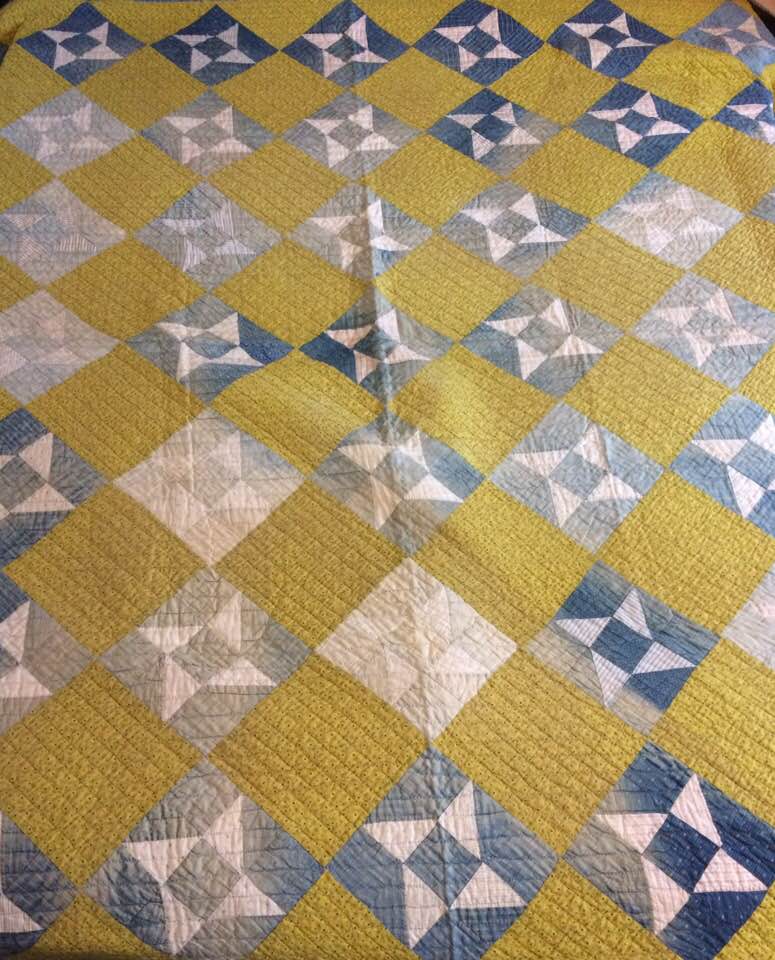 Caroline, une fidèle amie de Bee Kristine, aime chiner. Toutes deux ont une connaissance encyclopédique des tissus et des fils, des ouvrages anciens, des broderies et des dentelles… Même si Caroline ne fait pas de patchwork elle-même, elle a sa maison remplie de quilts, cadeaux de Kristine ou achats comme celui qu’elle s’est offert à l’AEF au stand de Cosabeth Parriaud :