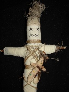 Le vaudou, voilà un mot qui évoque bien vite des poupées criblées d’épingles pour jeter un sort, et pourtant… les poupées à l’effigie d’une personne, les poupées d’envoûtement, existent bien dans la sorcellerie… occidentale, depuis bien plus longtemps ! Nous avons transféré nos peurs sur les pratiques vaudou qui, effectivement, tentent parfois de jeter un sort (bon ou mauvais, par exemple attirer l’amour ou l’échec à distance, sans toutefois souhaiter la mort…) à l’aide d’un petit paquet ficelé à la morphologie d’une personne… parfois piqué d’épingles, mauvais signe pour la personne visée 🤔