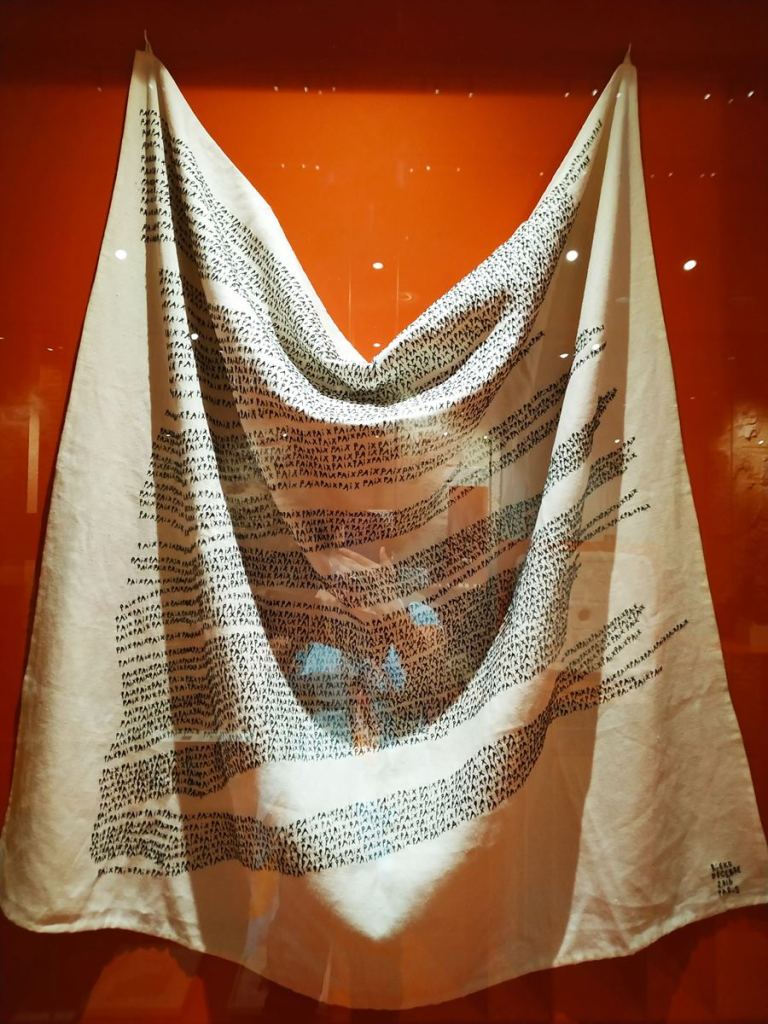 J’ai eu un grand plaisir à découvrir, en même temps que les origines des écritures, des œuvres de cette artiste déjà admirée l’année dernière à Toulouse. Ses ouvrages sont ici répartis dans chaque pièce du musée, les œuvres se dévoilent bien différemment, presque toujours protégées par une vitre.