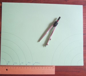 Je n’ai pas fait ce quilting de façon très spontanée, j’ai marqué mes lignes, intimidée sans doute par cet exercice nouveau pour moi. Munie d’un compas et d’un carton, j’ai dessiné ceci :