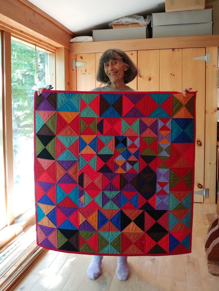 Ce quilt est inspiré d’une oeuvre faite par Kristin Shields de l’Oregon, Etat aux grandes forêts de pins ! Il est présenté dans le dernier livre de Gwen Marston et Cathy Jones sur l’utilisation moderne des triangles, Free Range Triangle Quilts, AQS Publishing, livre que nous aimons beaucoup, comme tous ceux de Gwen !