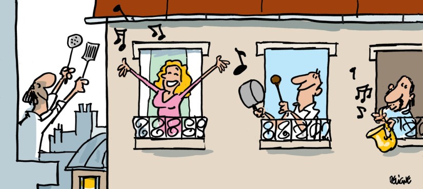 Dans les villes et les villages, en France et ailleurs pendant le confinement, des millions de personnes se sont mis à la fenêtre, au balcon ou dans leur rue pour applaudir tous les personnels qui travaillent pour nous, malgré tout : en premier lieu les personnels des hôpitaux, les soignants ainsi que tous les autres maillons indispensables de la chaîne de soins, mais aussi tous ceux qui ont continué à travailler en côtoyant d’autres personnes, alors que le risque était élevé et les protections souvent insuffisantes. Ce mouvement s’est amplifié, petits et grands ont eu à cœur de poursuivre les applaudissements jusqu’au dernier jour du confinement.